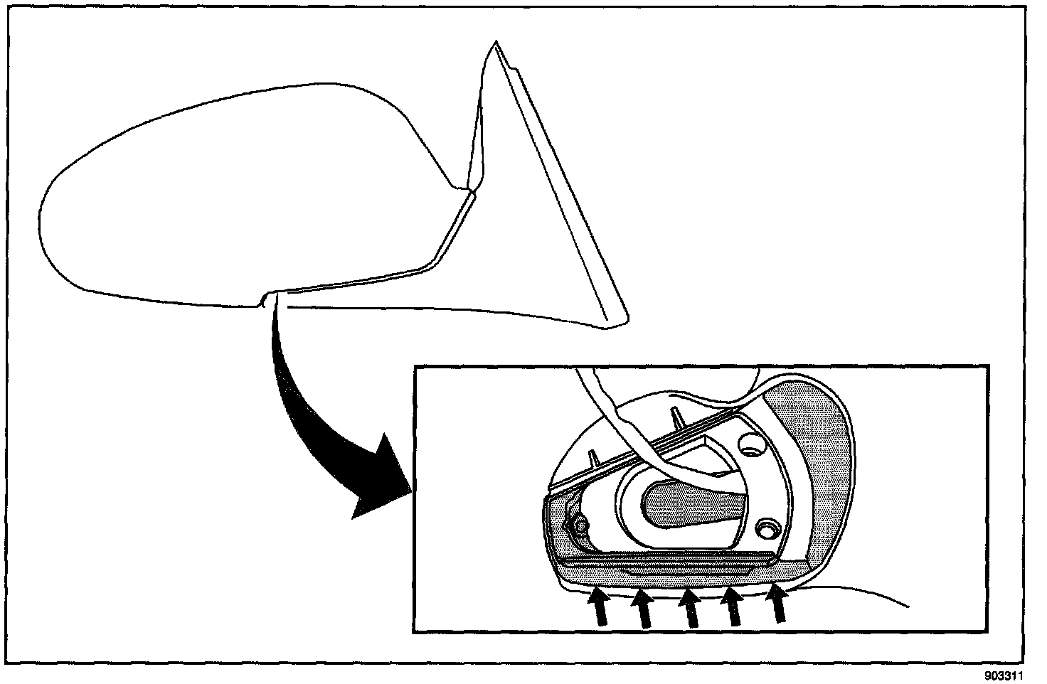 7. Repeat this procedure for the outside rear view mirror on the opposite side of the vehicle, if necessary.