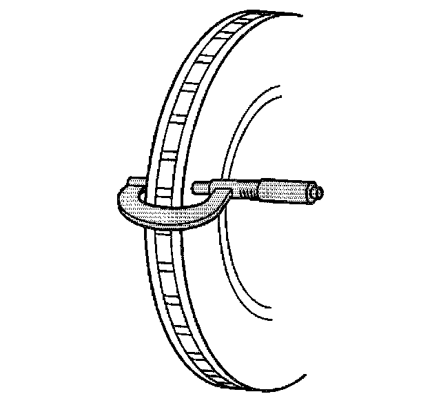 2. Using a micrometer calibrated in ten-thousands of an inch, measure and record the lowest thickness of the brake rotor at four or more points, equally spaced around the rotor.
