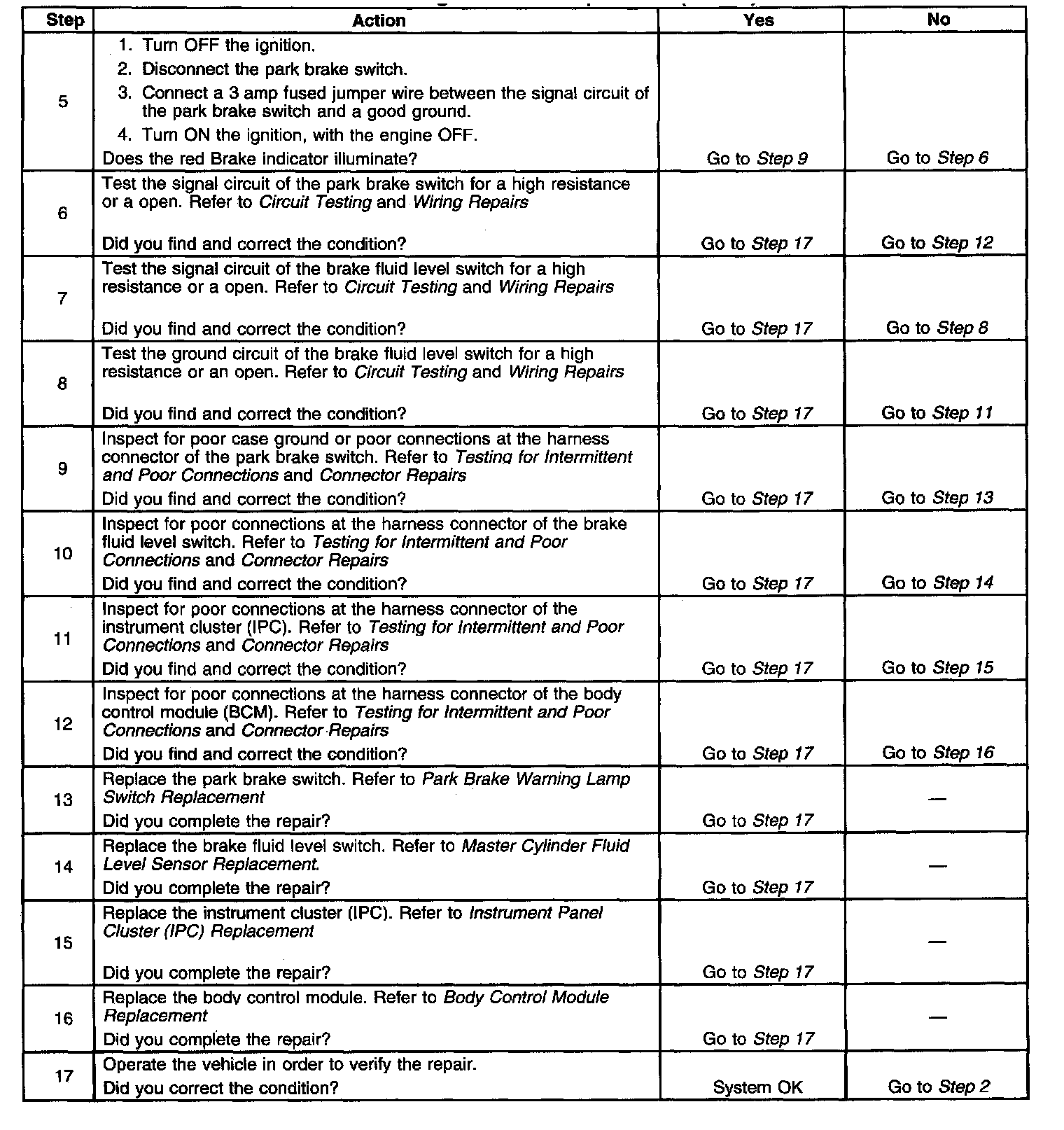 Brake Warning Indicator Inoperative