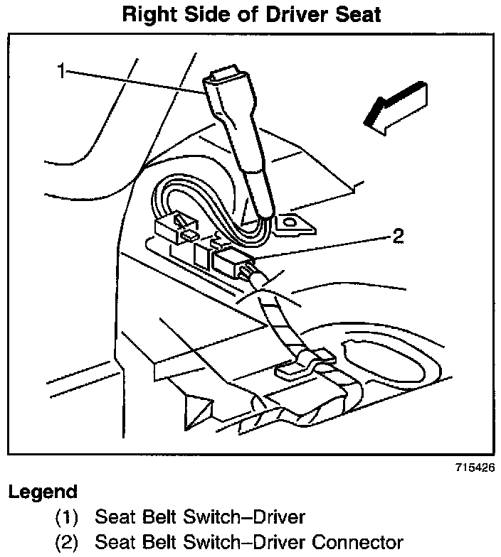 Part of the driver seat belt, inside the right half of the driver's seat belt (buckle side)