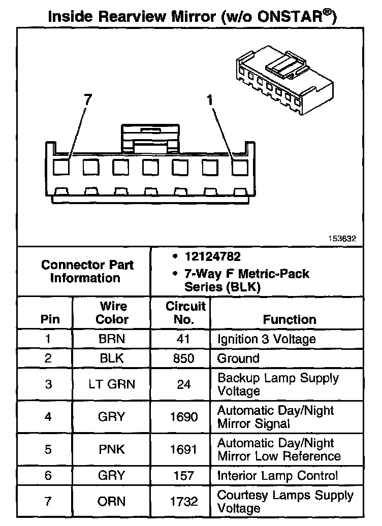 Inside Rearview Mirror (W/O ONSTAR(R)):