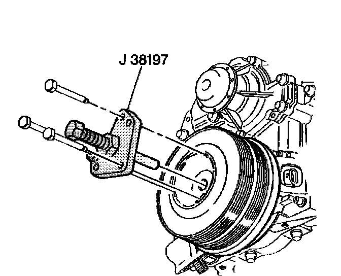 3. Install the crankshaft balancer retaining bolt. Use the J 37096 to keep the flywheel from turning.