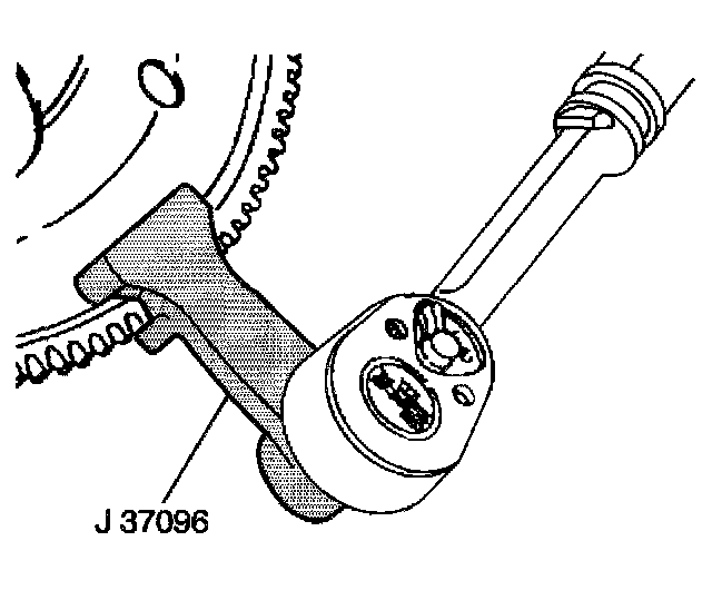 7. Install the J 37096 to hold the flywheel.