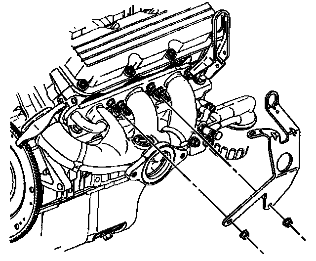 5. Install the fuel injector sight shield bracket to the exhaust manifold studs.