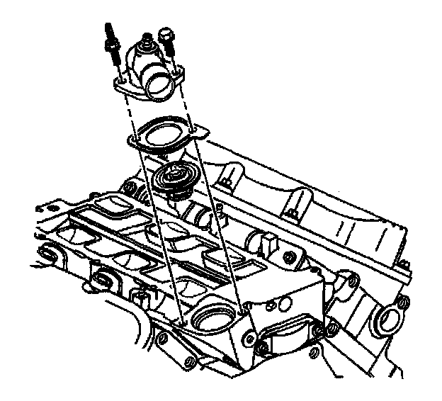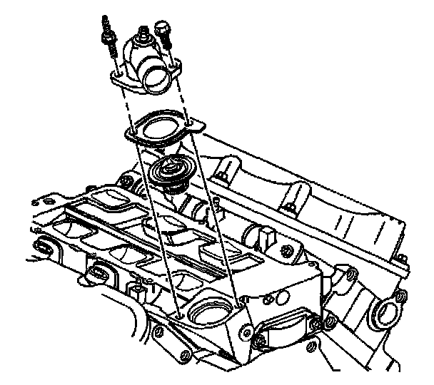 2. If removed, install the thermostat, the gasket, and the water outlet housing.