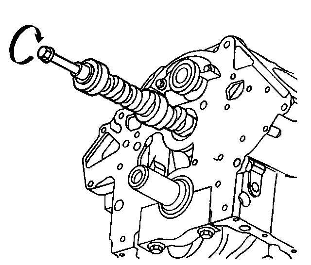 3. Install one 1/2-20 x 6.0 inch bolt in the camshaft front bolt hole.