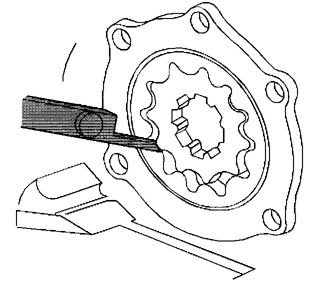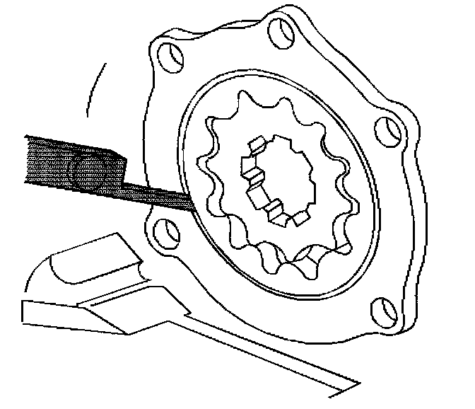 8. Measure the outer oil pump gear diameter clearance. If the outer oil pump gear diameter clearance is greater than 0.381 mm (0.015 inch) the oil pump must be replaced.