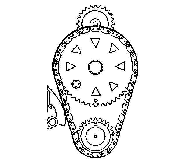 1. Install the timing chain on the sprockets. Align the timing marks.