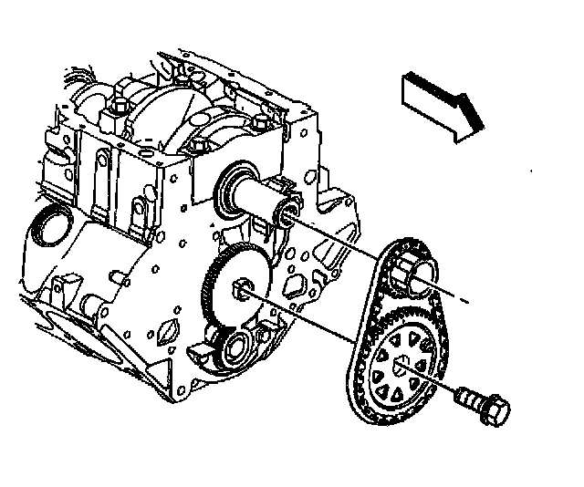 2. Install the timing chain, the crankshaft sprocket, and the camshaft sprocket.