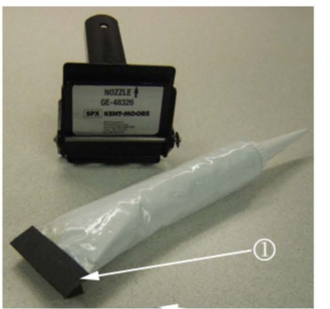 The following service procedures will assist technicians in the proper use of the new sealant dispenser GE-48326 in applying an even bead of sealant 3 mm (0.118 in) in diameter using one hand, even in areas not accessible using engine sealant cartridge and caulking gun.