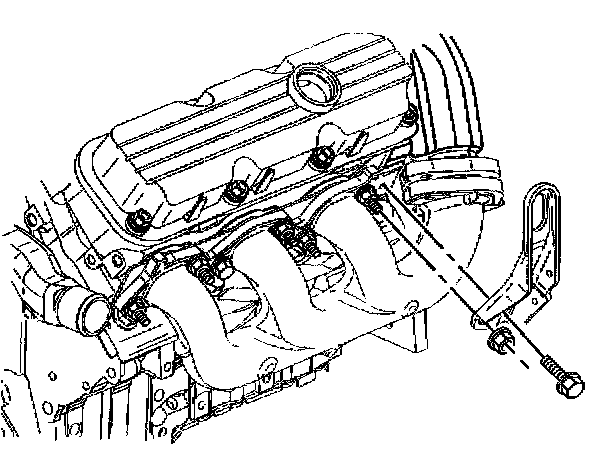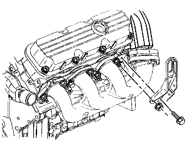 8. Remove the left engine lift bracket from the left exhaust manifold.