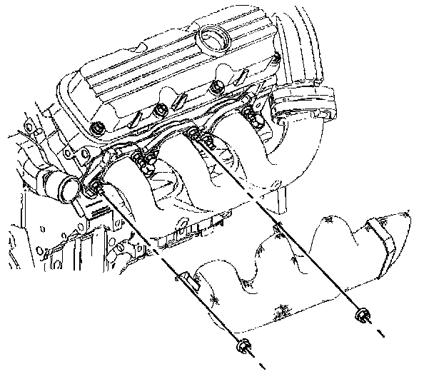 11. Remove the left exhaust manifold retaining bolts and nuts.