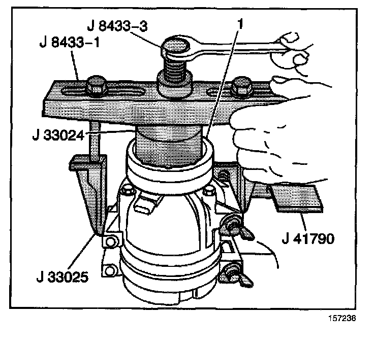 5. Turn the center forcing screw of the J 8433 to press the clutch coil onto the front head until the clutch coil is fully seated.