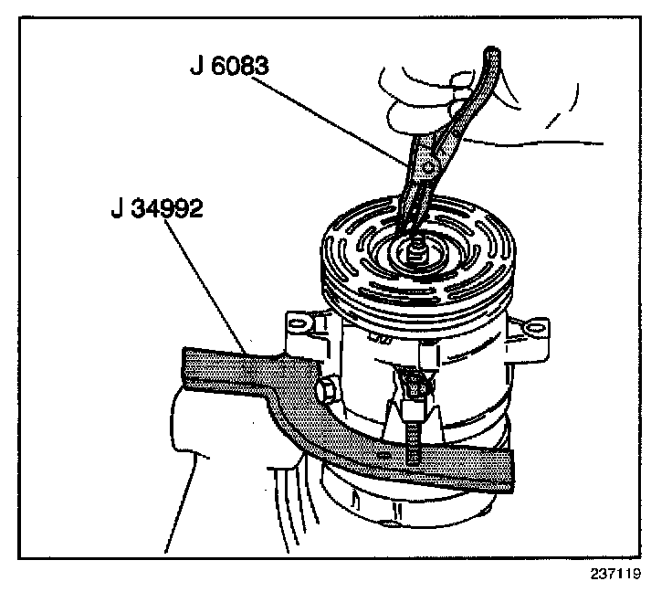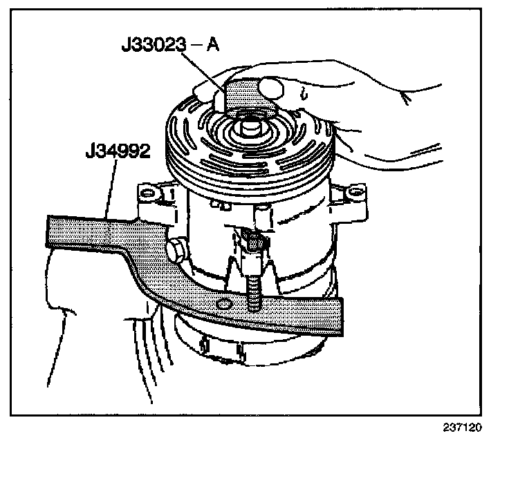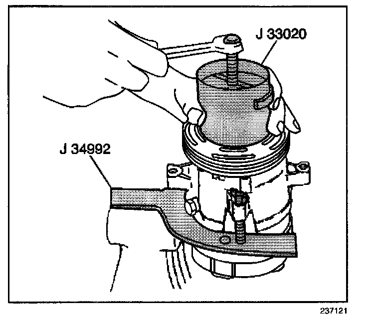 8. Install the J 33023-A on the front head of the compressor.