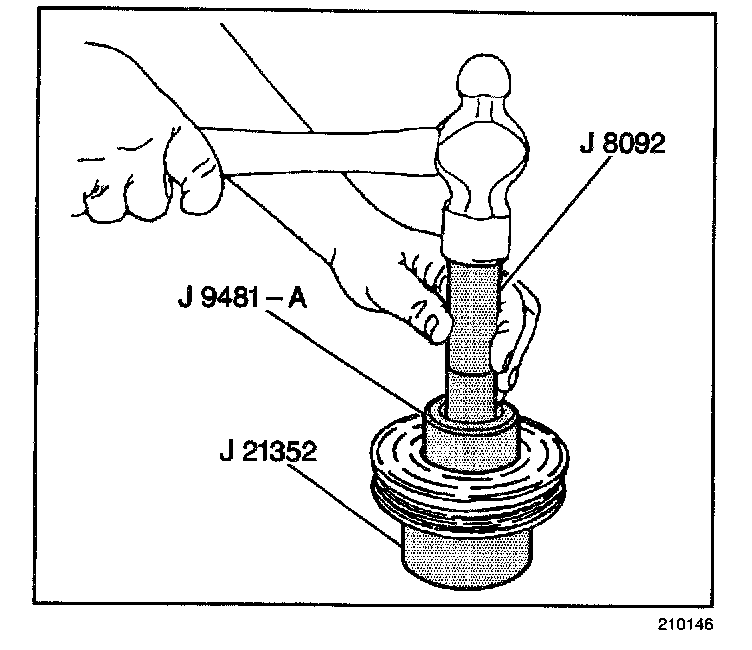 3. Using the J 9481-A and the J 8092, drive the bearing into the hub.