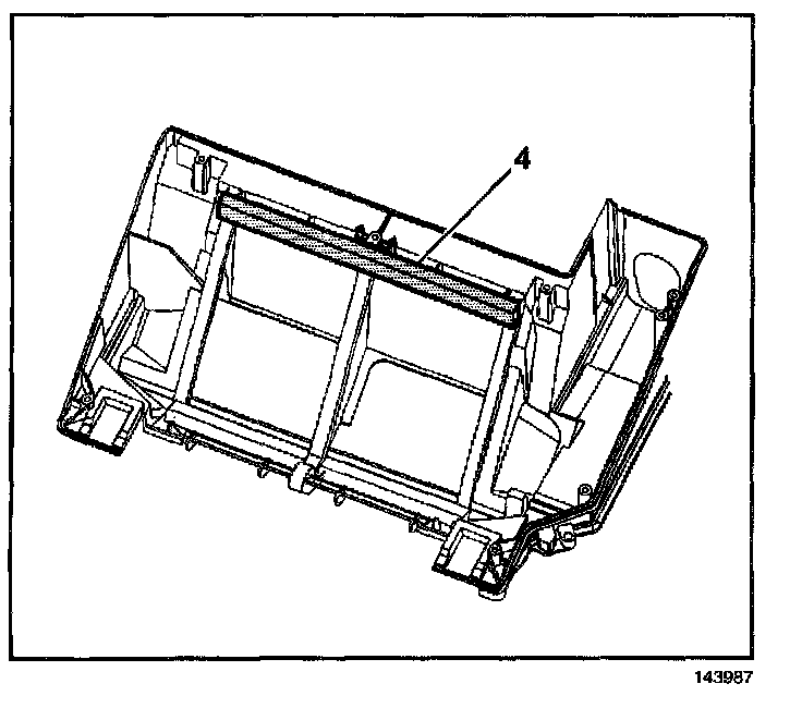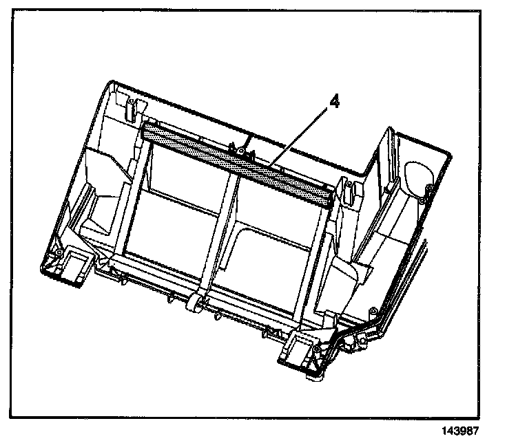 16. Remove and discard the heater core lower seal (4) from the HVAC case.