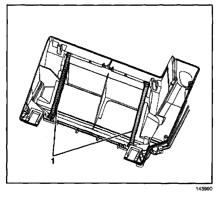 1. Install the heater core side seals (1) from the HVAC lower case.