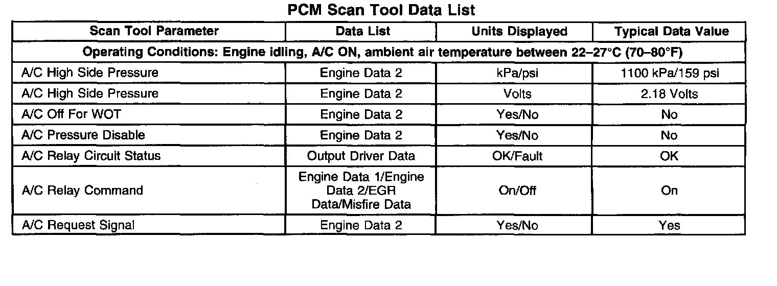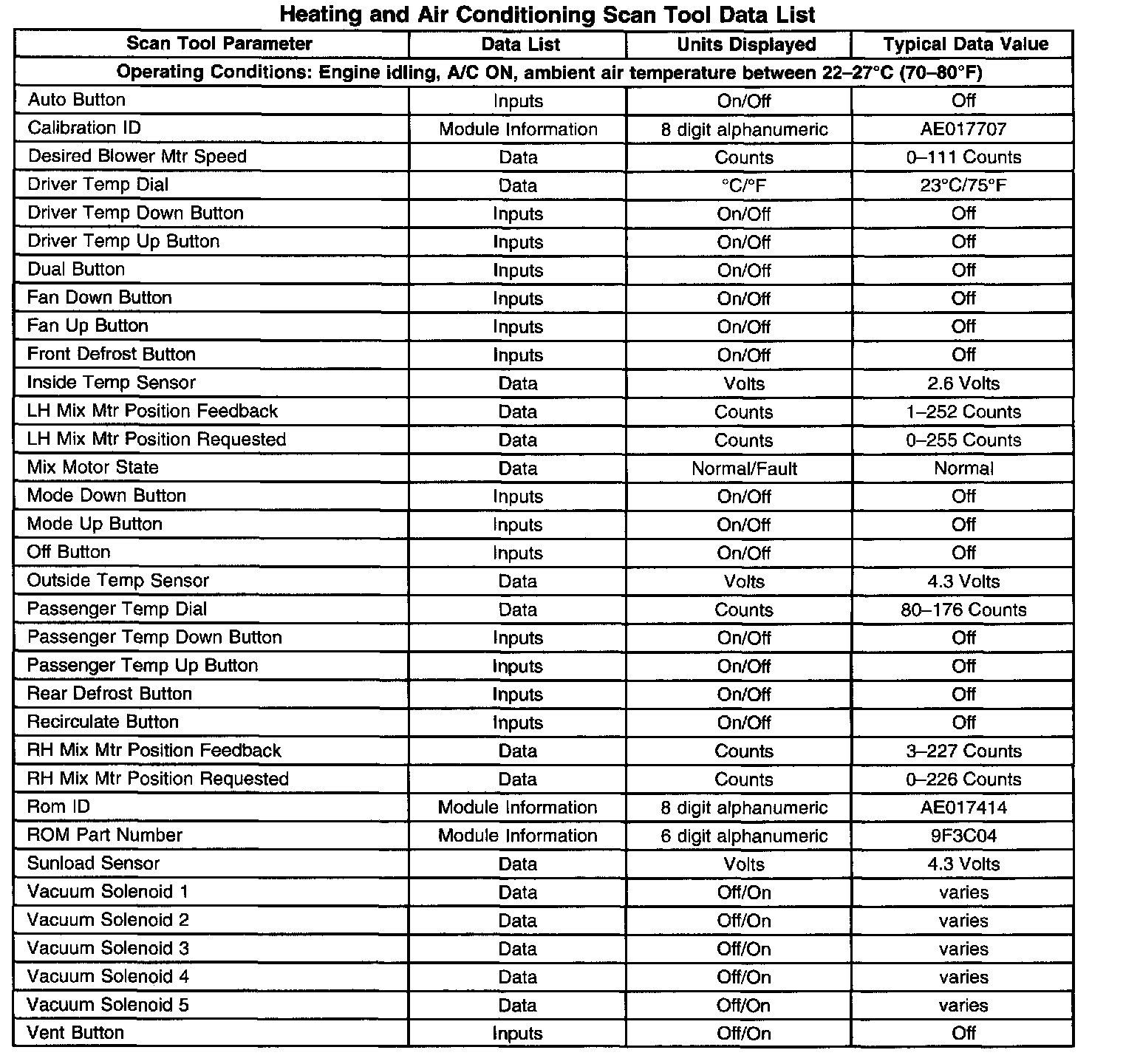 Heating And Air Conditioning Scan Tool Data List:
