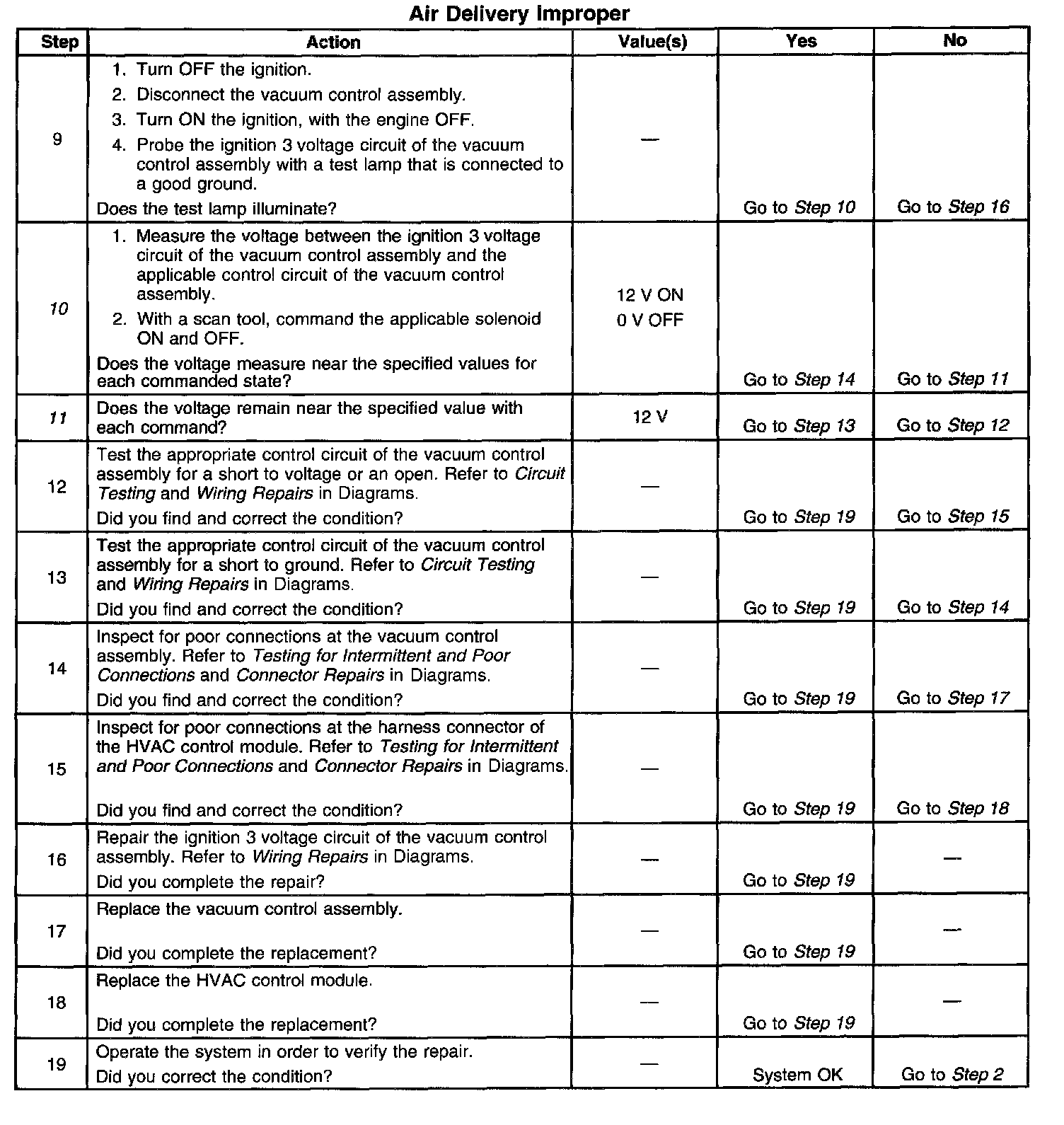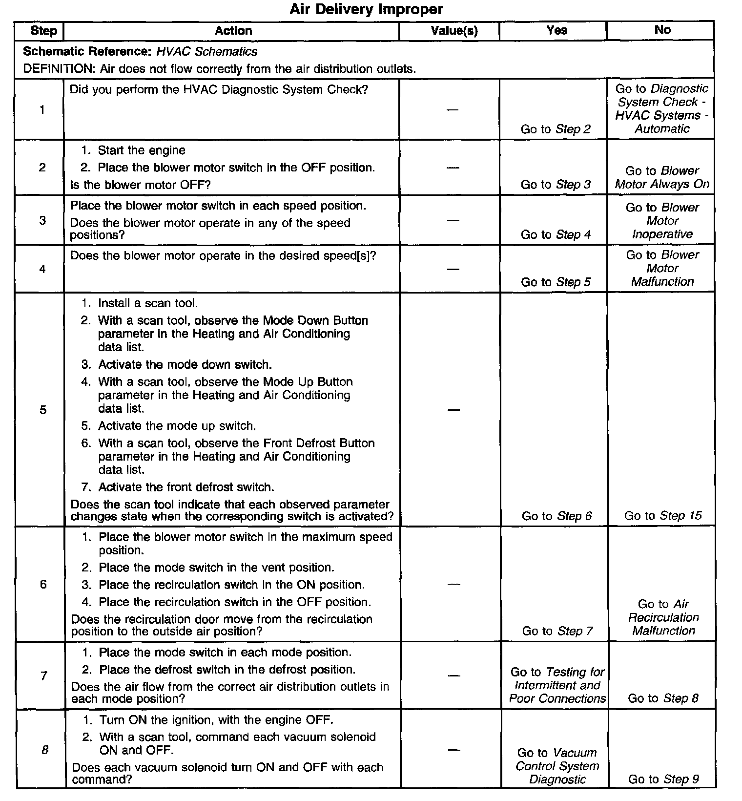 The number(s) below refer to the step number(s) on the diagnostic table.