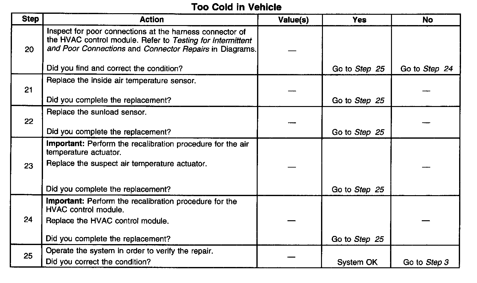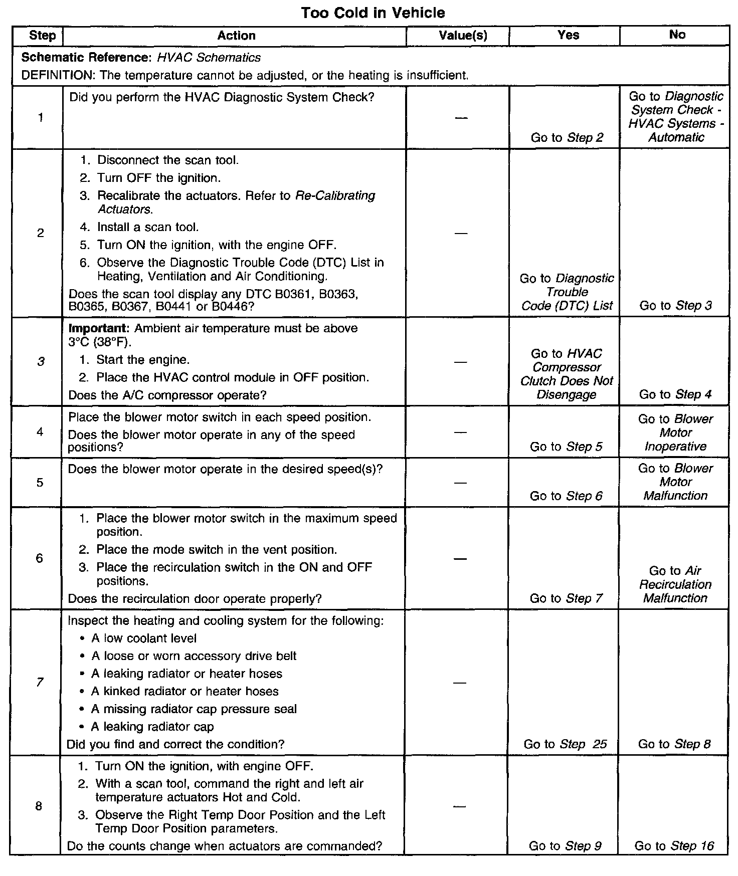 Symptoms - HVAC System - Automatic
