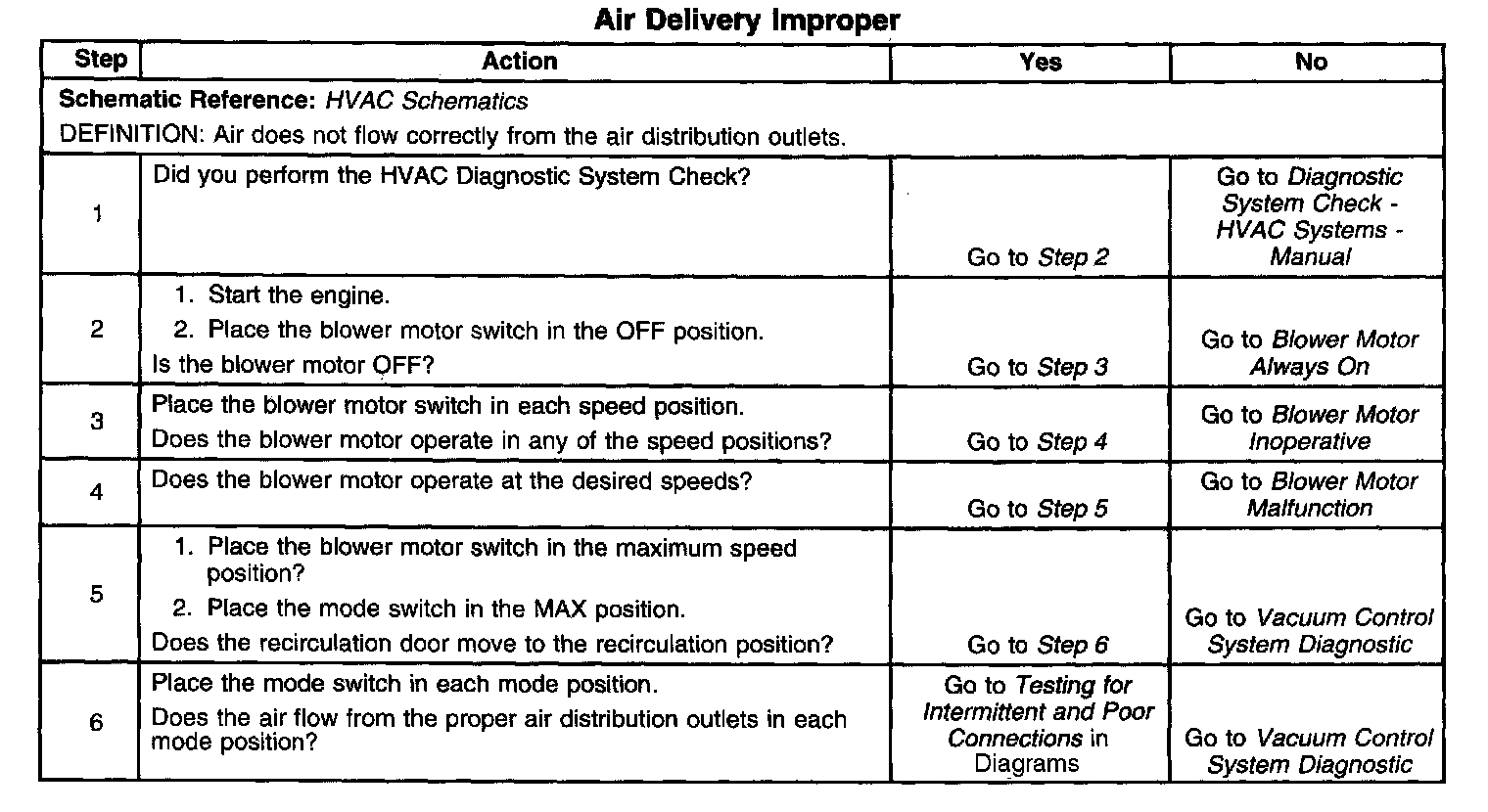 Symptoms - HVAC System - Manual