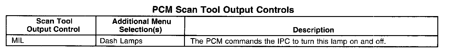 Scan Tool Output Controls - Powertrain Control Module (PCM)