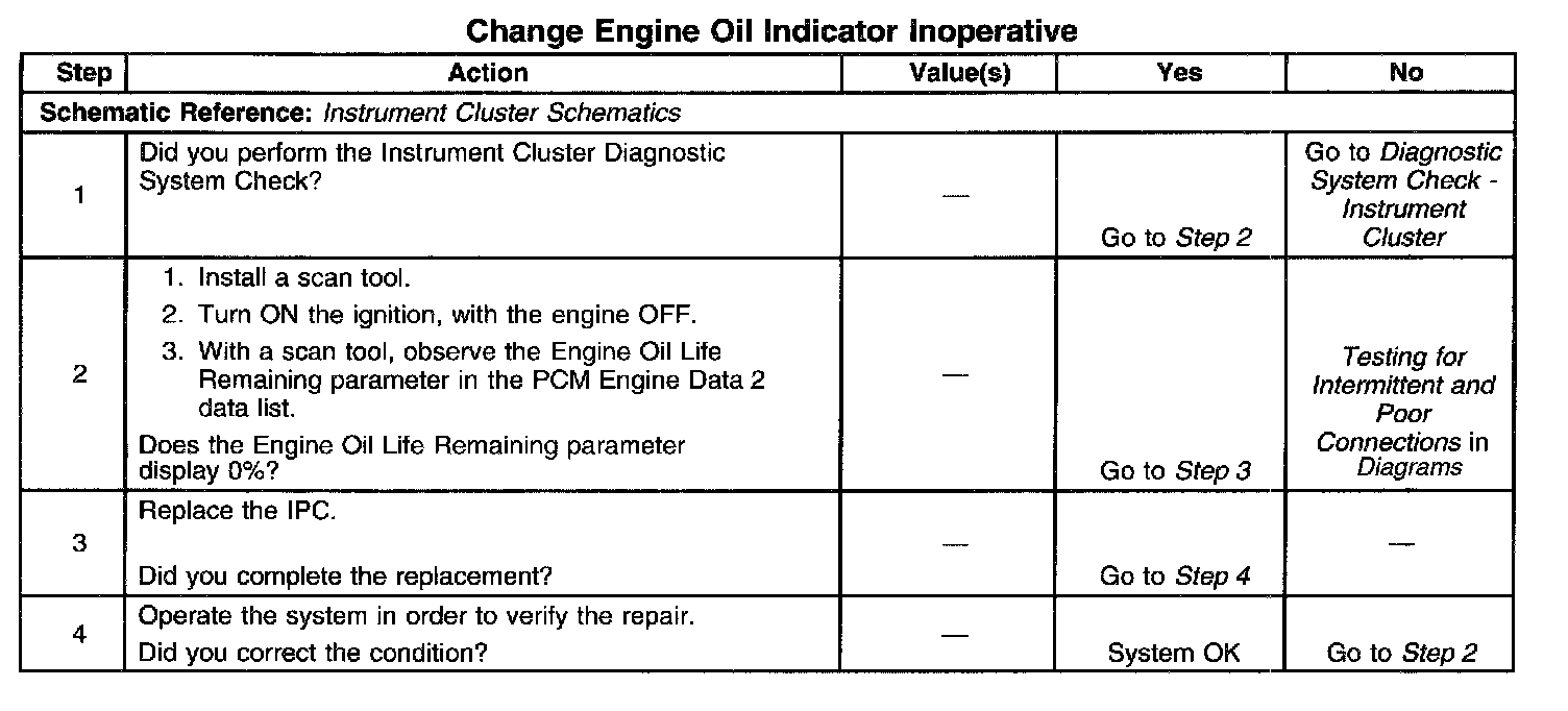 CHANGE ENGINE OIL Indicator Inoperative