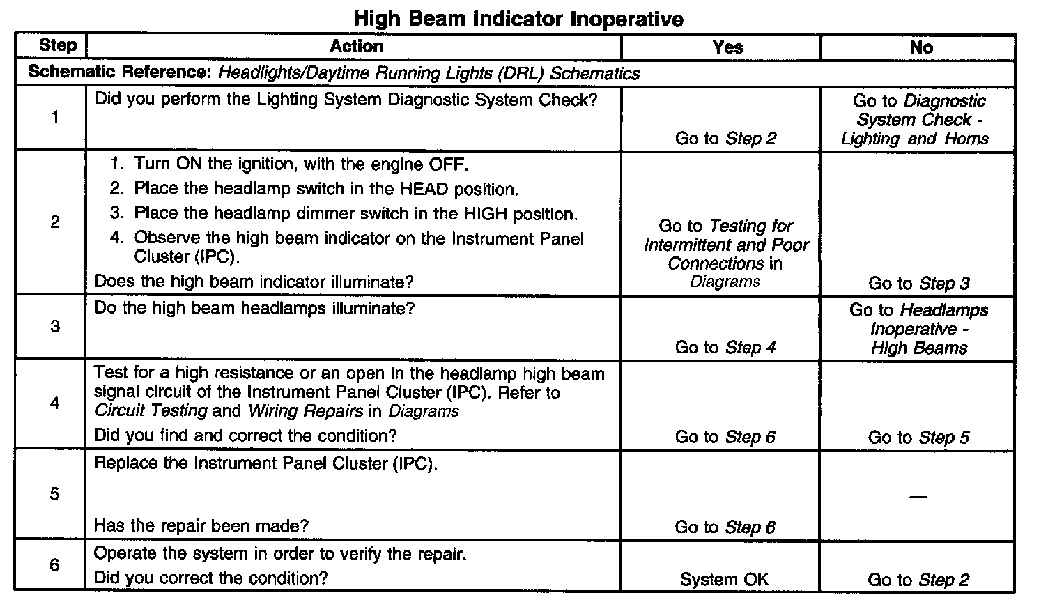 High Beam Indicator Inoperative