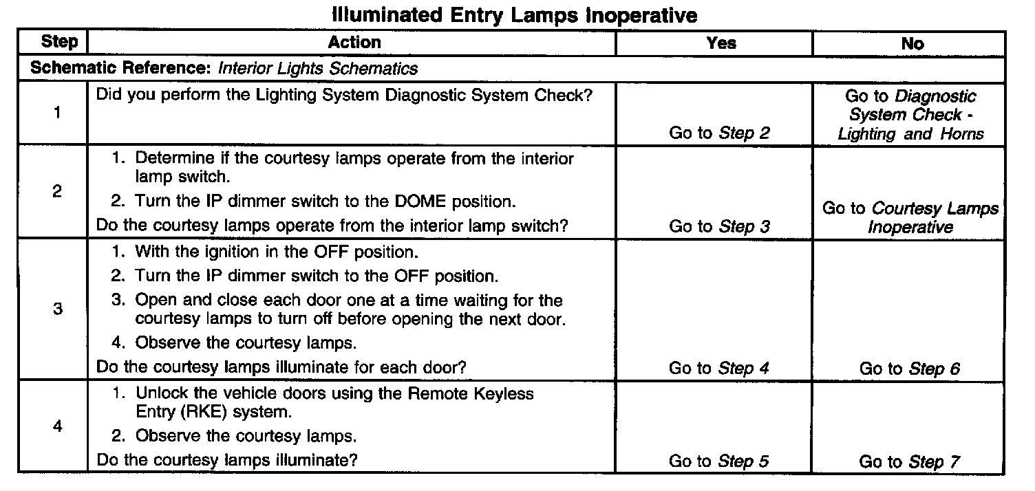 Illuminated Entry Lamps Inoperative
