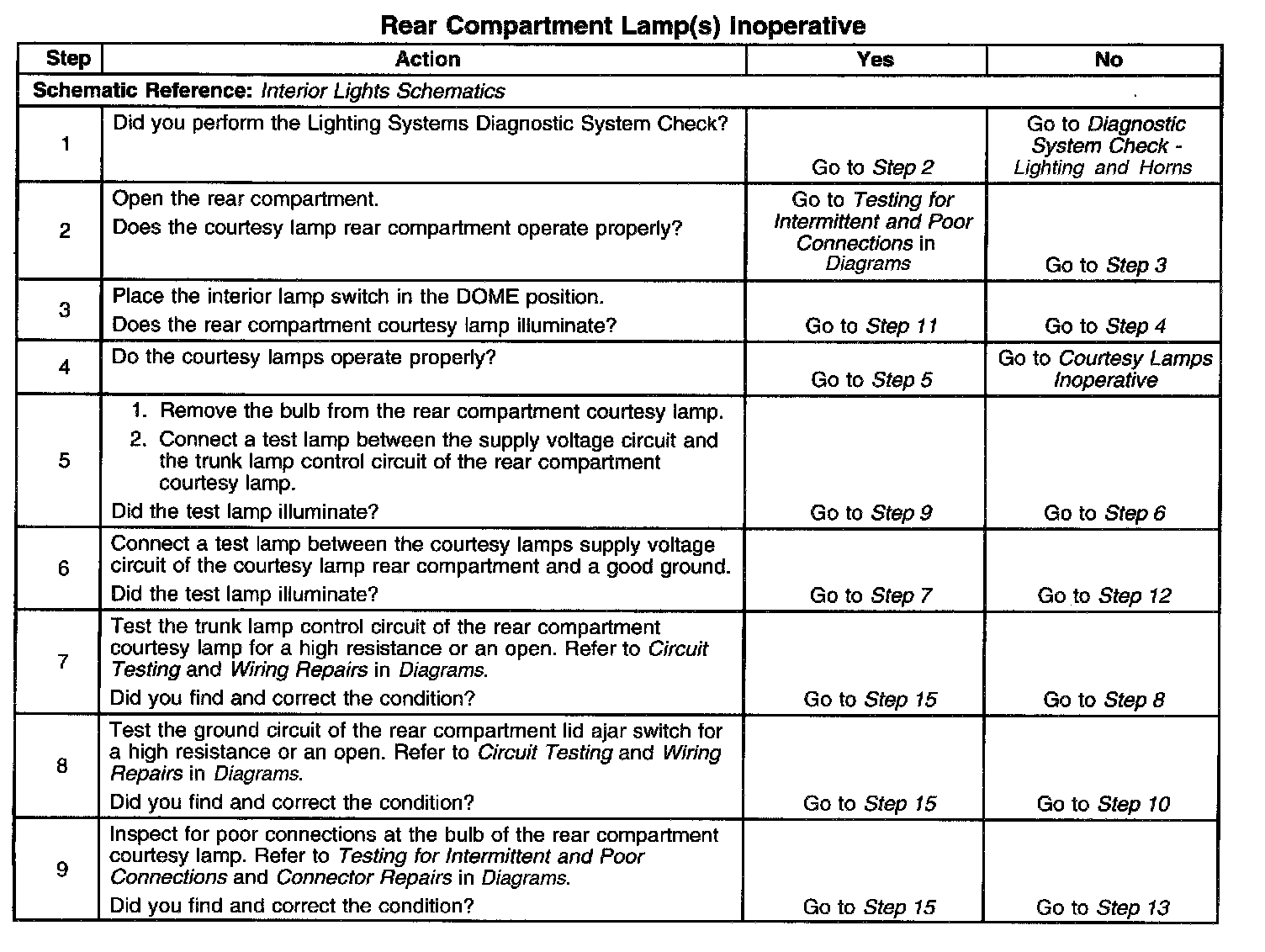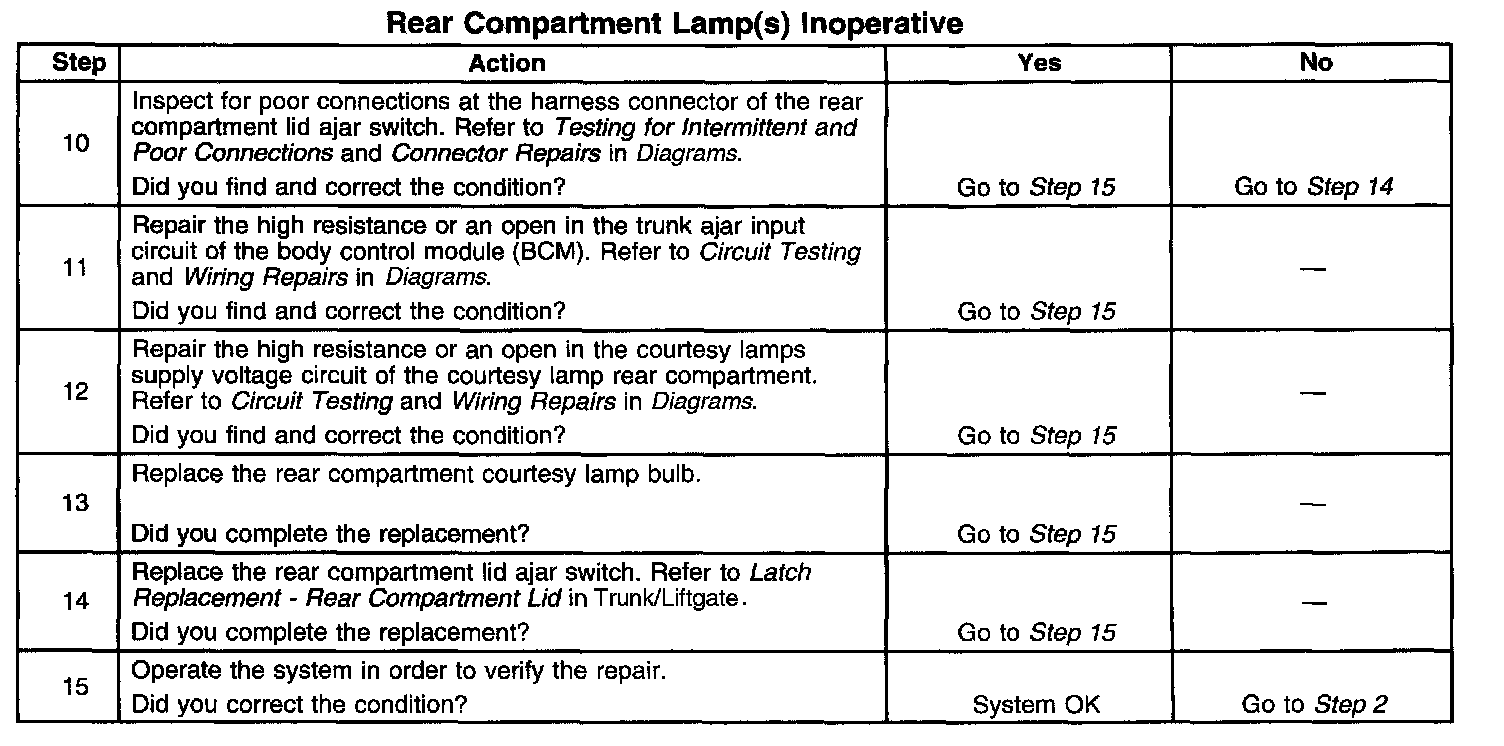 Rear Compartment Lamps Inoperative