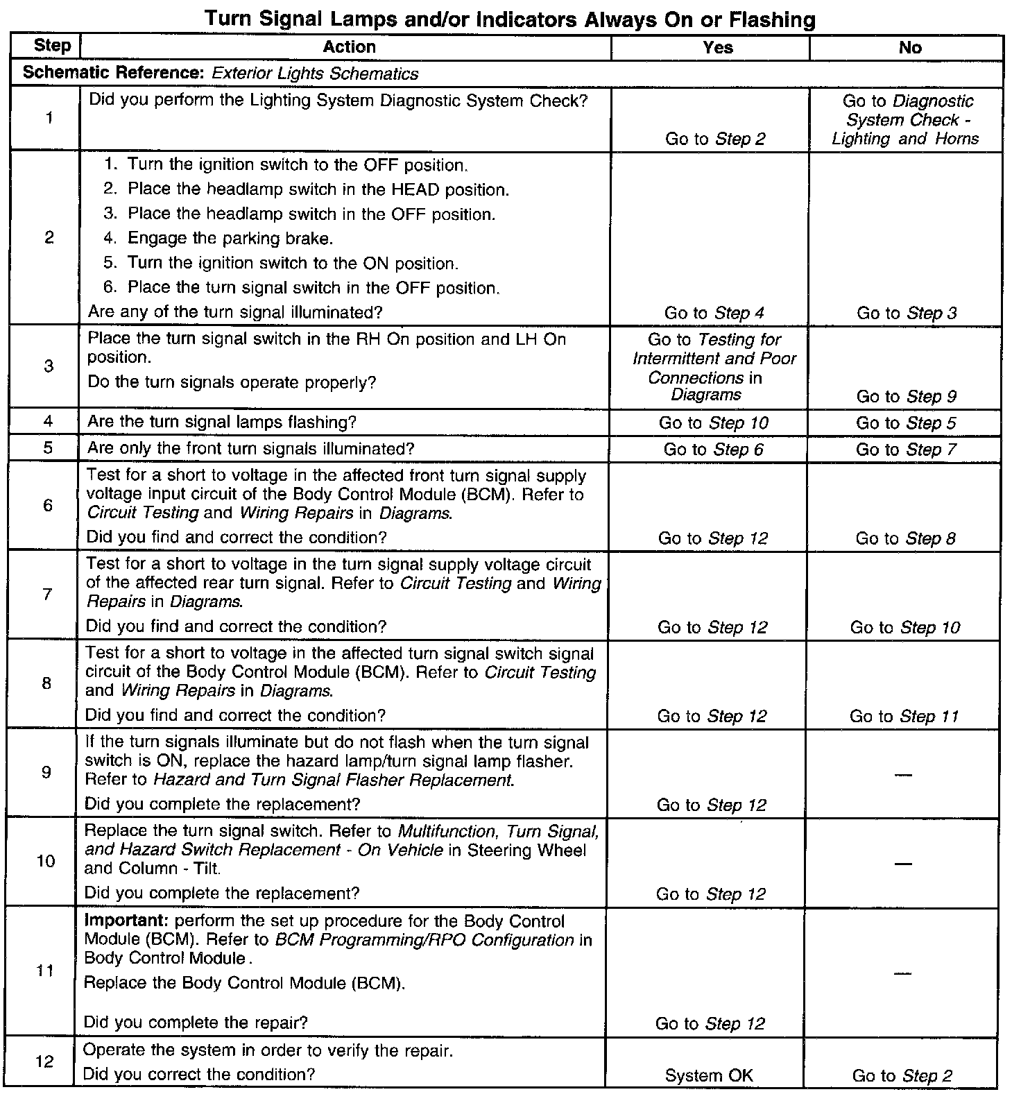 Turn Signal Lamps and/or Indicators Always On or Flashing