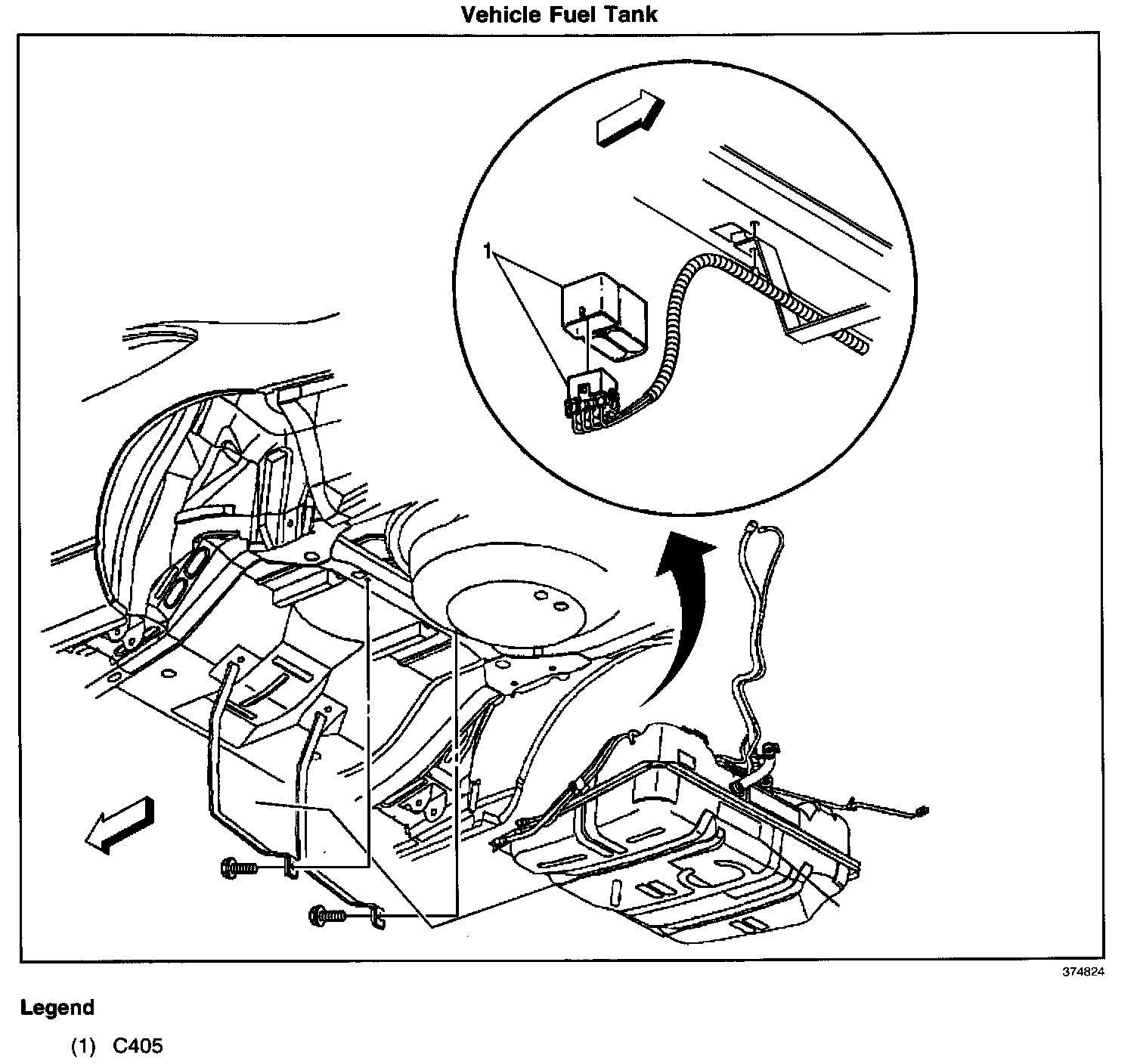 (8 cavities) Body wiring harness to the fuel pump and sender jumper harness and the rear wheel speed sensor wiring harness, rear compartment floor, forward of the spare tire well