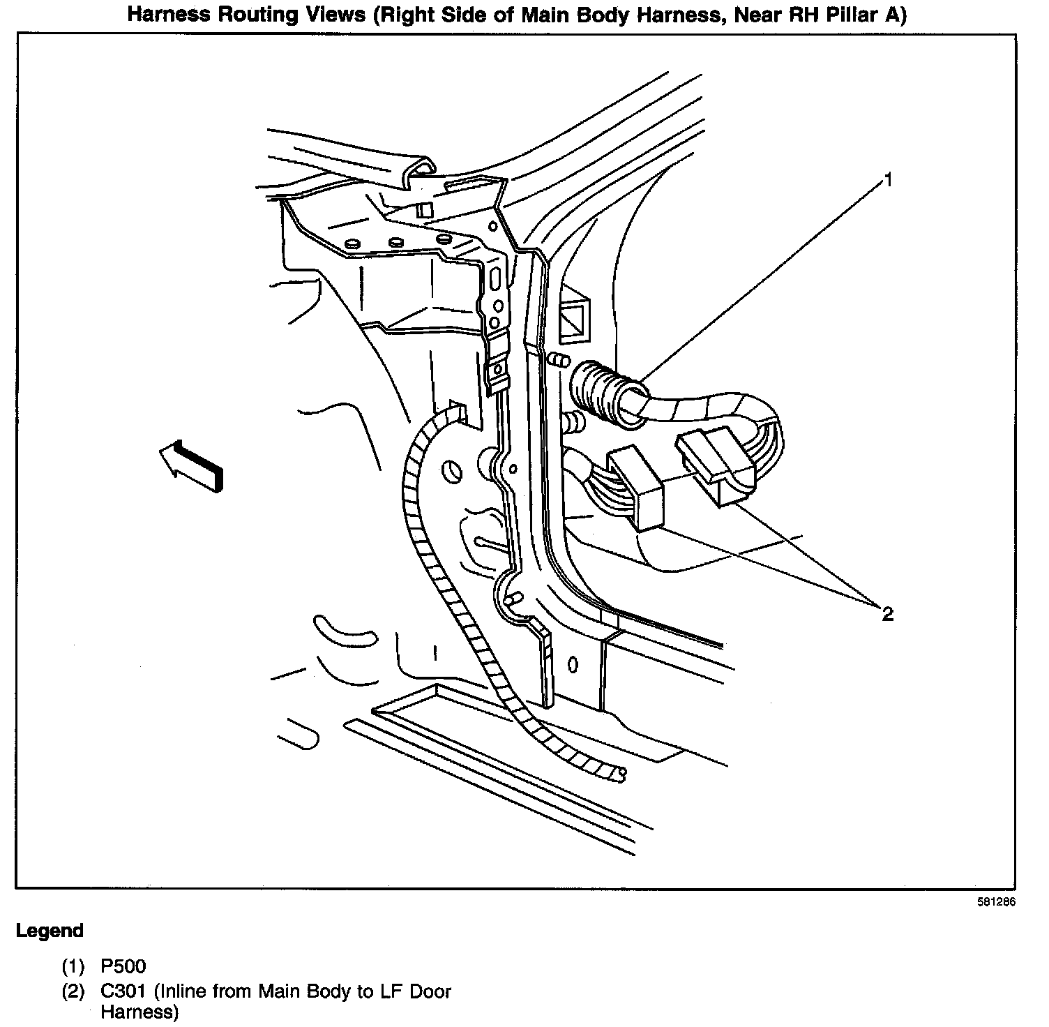 Harness Routing Views (Right Side Of Main Body Harness, Near RH Pillar A):
