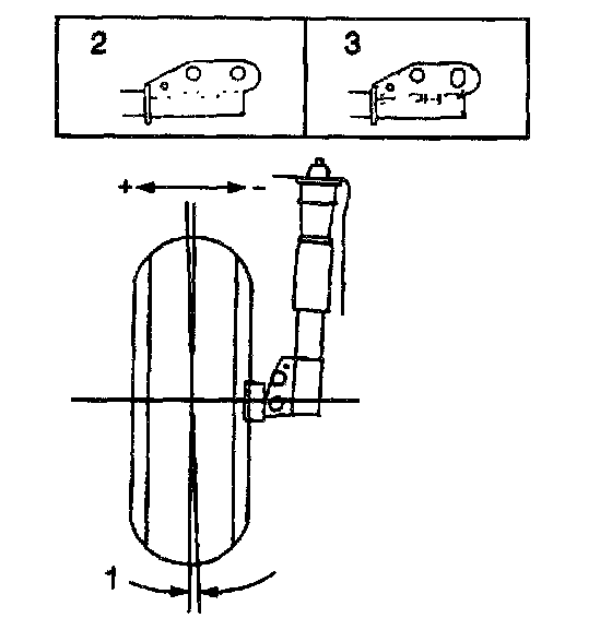 4. Place the strut in a vise and file the hole lateral (oblong). Compare the appearance of the holes before filing (2) with after filing (3).