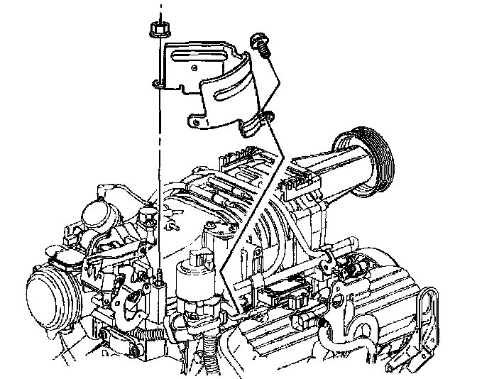 3. Remove the exhaust gas recirculation (EGR) valve heat shield nut, bolt and heat shield.