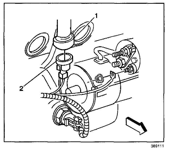 2. Connect the knock sensor electrical connector (2) to the knock sensor (1).