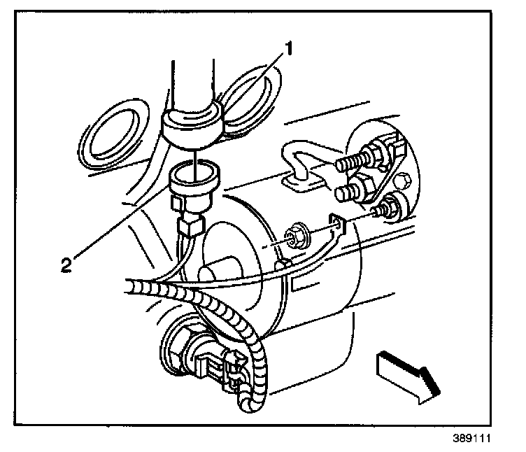 1. Install the knock sensor (2) into the engine block (1).