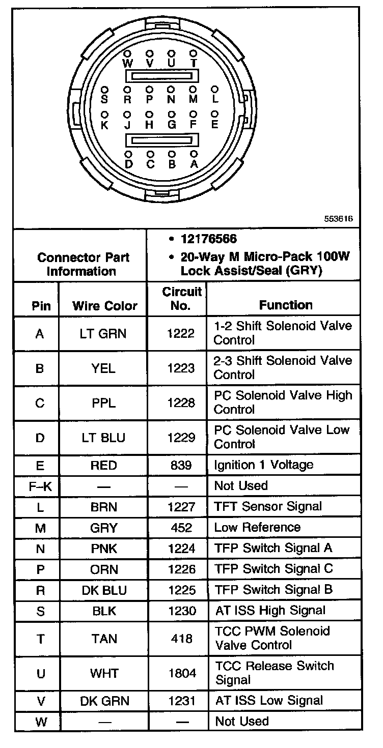 A/T Inline Harness 20-Way Connector, Transmission Side