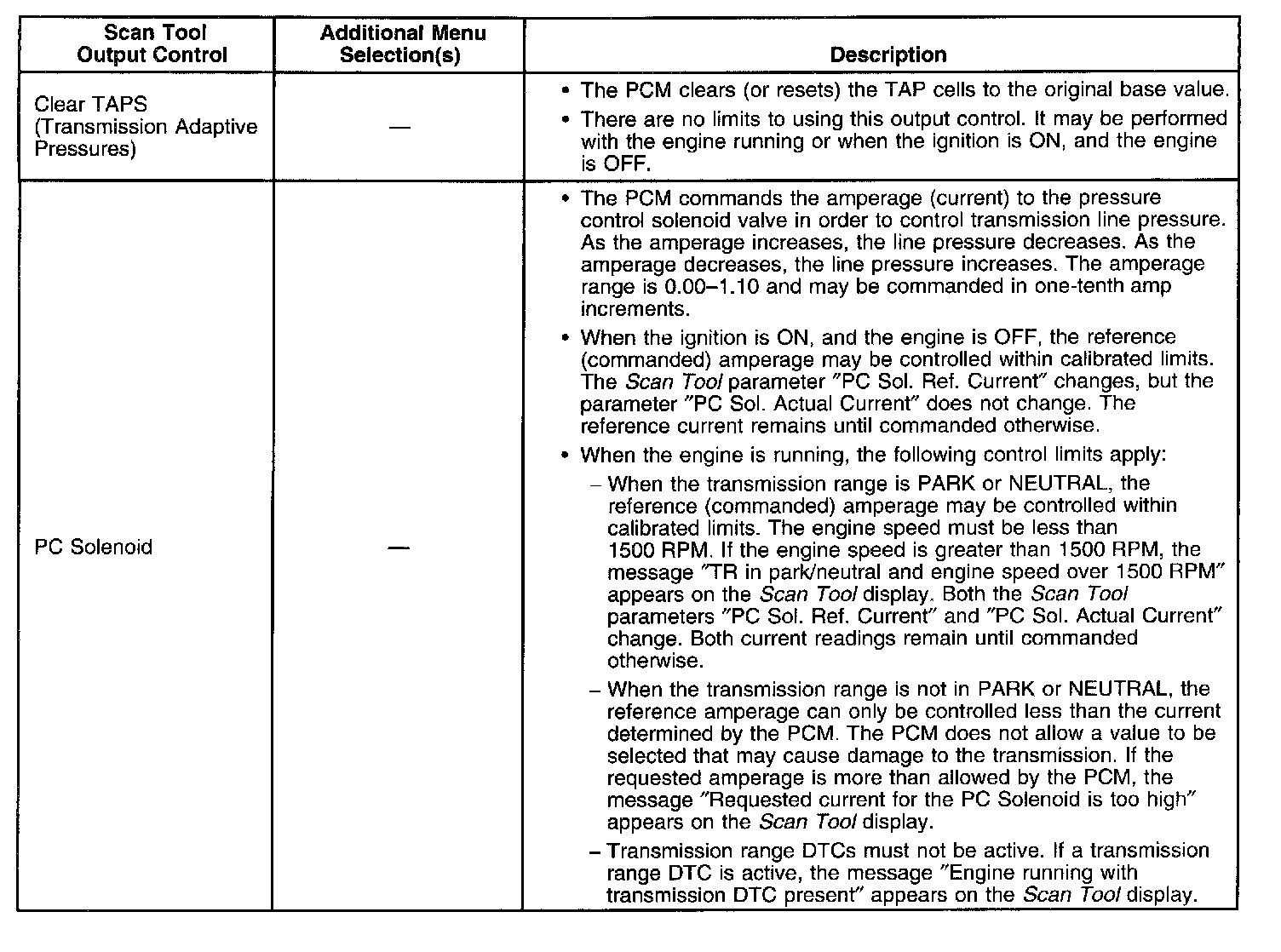 Scan Tool Output Controls