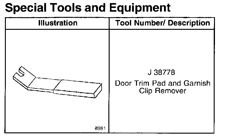Special Tools And Equipment: