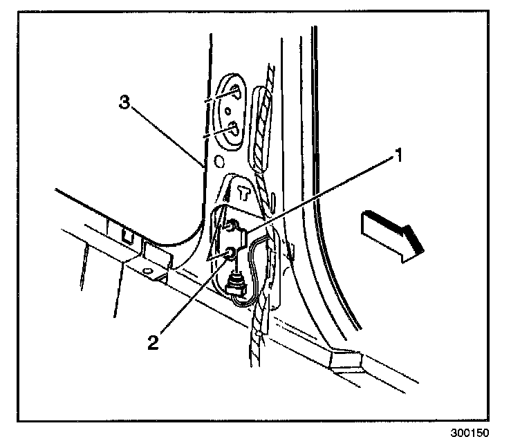 4. Remove the inflatable restraint side impact sensor (1) from the center pillar (3).