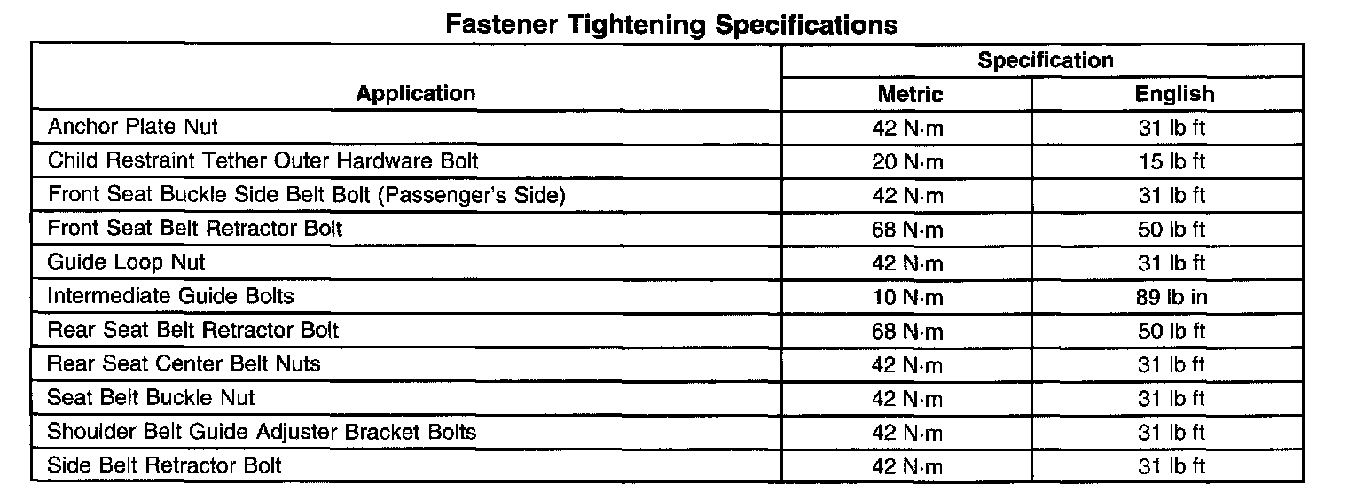 Fastener Tightening Specifications: