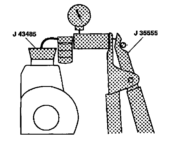 4. Place J 43485 on or in the pump reservoir filler neck.