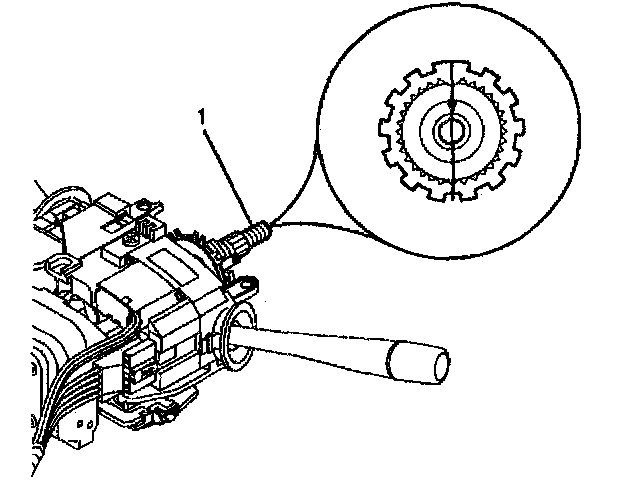 - The block tooth (1) of the steering shaft assembly is in the 12 o'clock position.