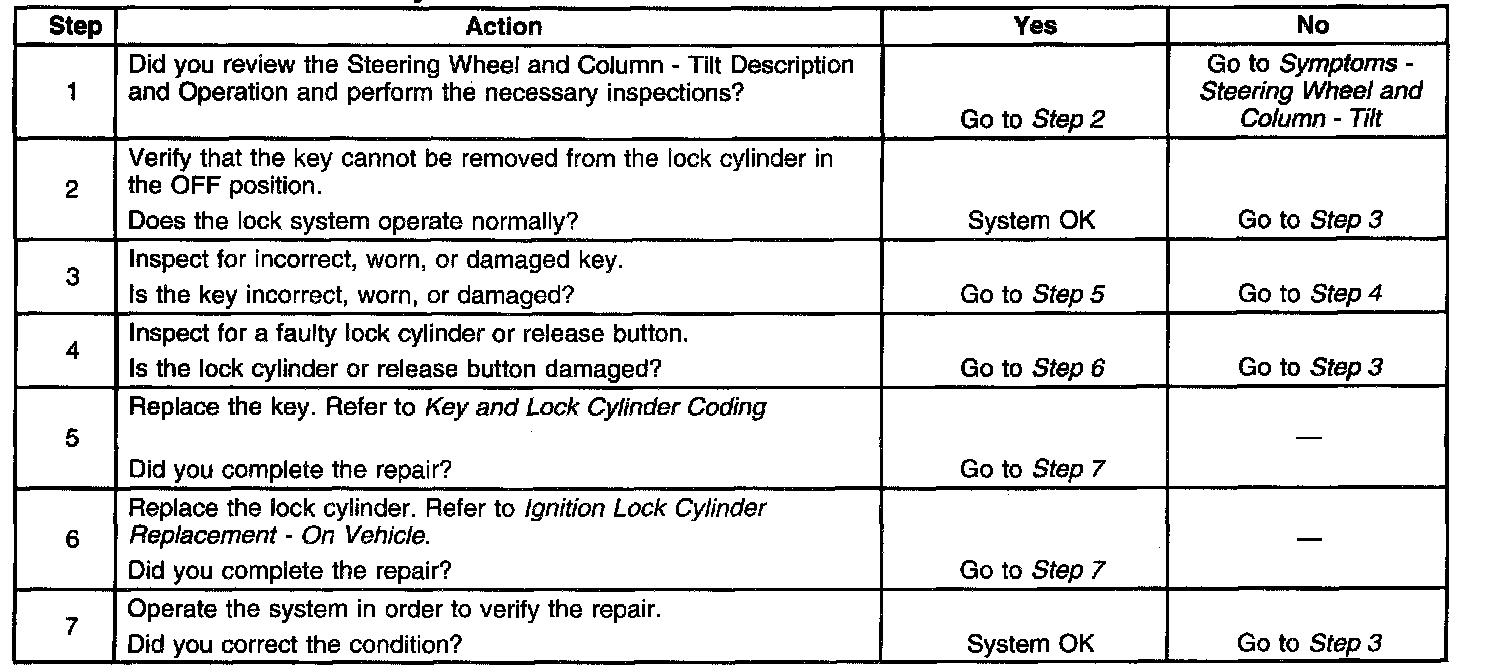 Key Cannot Be Removed In the Off Lock Position - Tilt Column