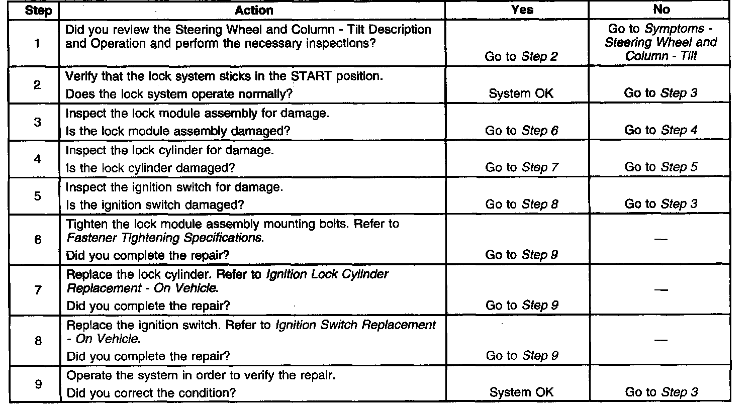 Lock System Sticks In Start - Tilt Column