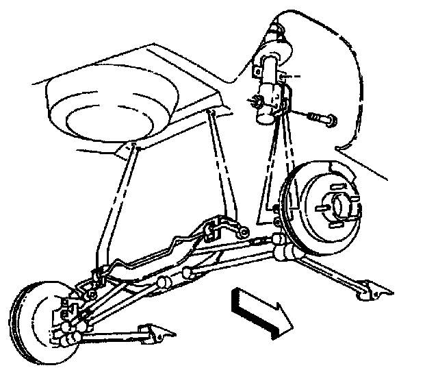 General DescriptionThe rear suspension utilizes coil springs over struts and light weight aluminum knuckles. Each wheel is mounted to a tri-link independent suspension system. The three links are identified as the inverted U channel trailing arm and the tubular front and rear rods.