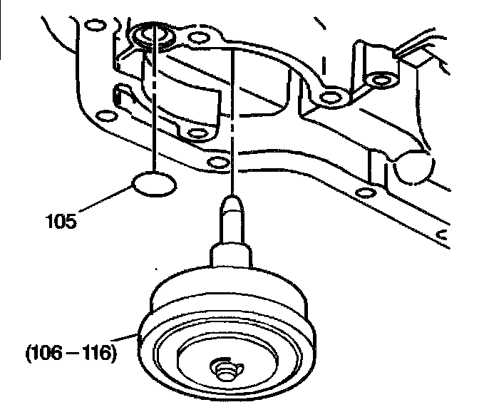 ^ Tighten the manual 2-1 band servo cover bolts (103) to 24 Nm (17 ft. lbs.).