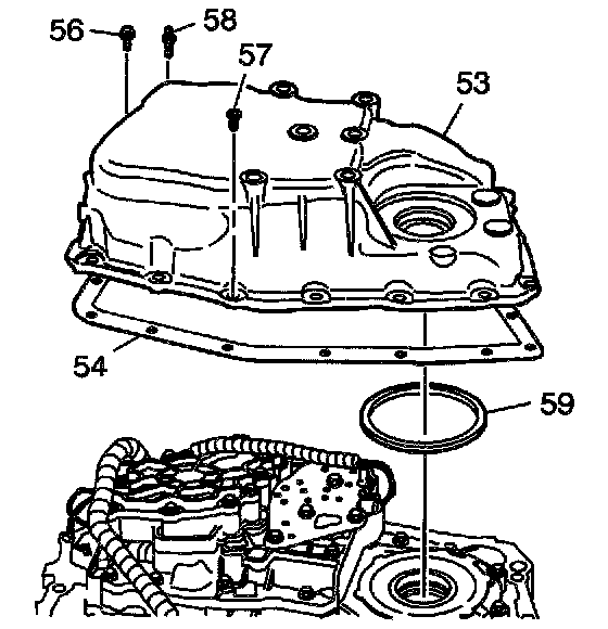 3. Assemble the case side cover inner gasket (59) to the case side cover (53). Use J 36850 or equivalent to retain the gasket in position.