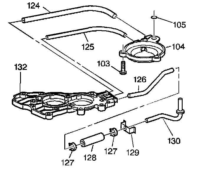 6. Disassemble the lube oil pipe (126), the hose clamps (127), the hose (128), the lube oil pipe retainer (129) and the lube oil pipe and washer assembly (1130).